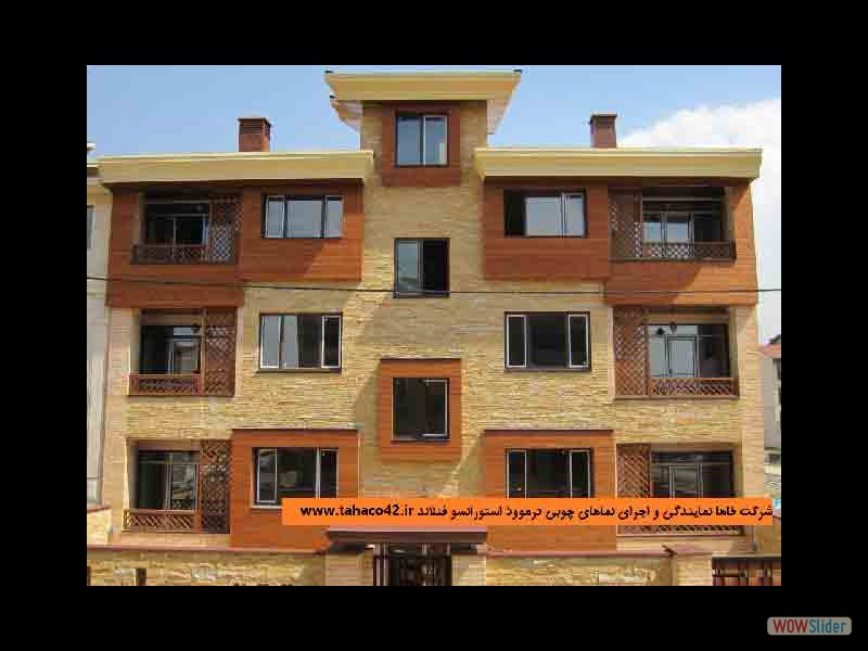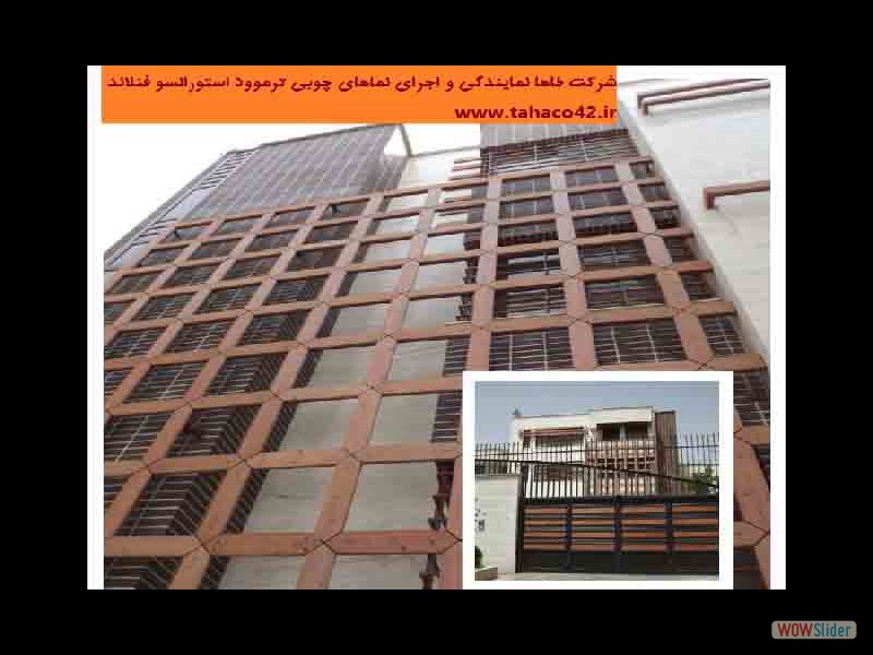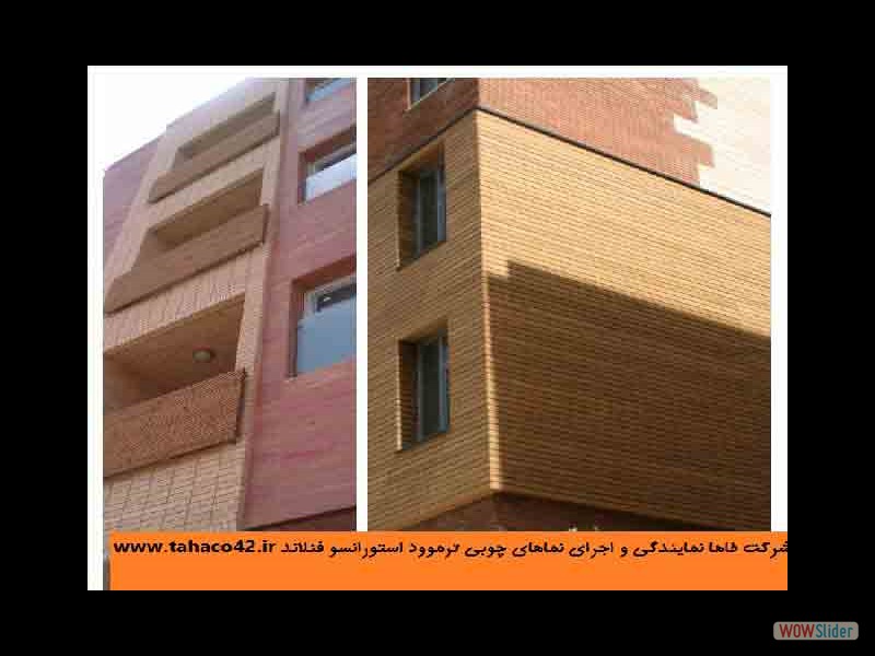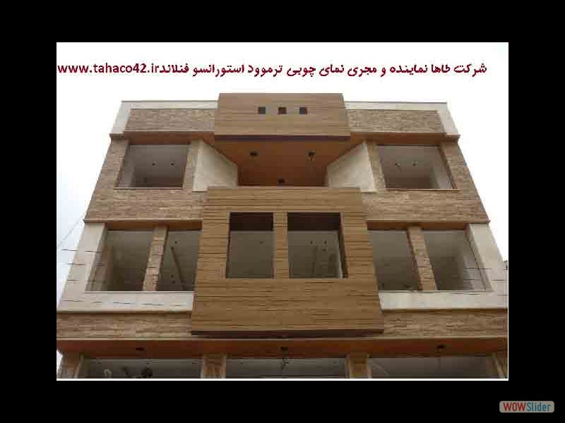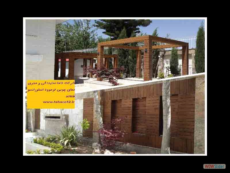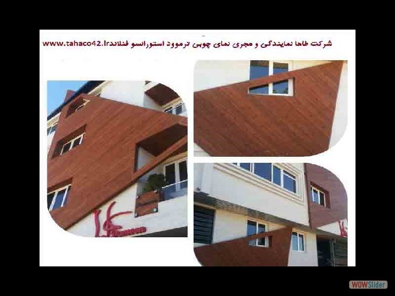 ترمووود ، یکی از بهترین محصولات جهت استفاده در نما و ساختارهای بیرونی است. سطح بالای ماندگاری و ایمنی این محصول باعث می شود تغییرات بسیار کمی در اندازه و ابعاد آن در محل اتصال به دیوار ایجاد شود. این ترمووود به دلیل کاهش بسیار ناچیز در ابعاد ، دارای قدرت اجرا و نصب و سرویس کاری بالایی می باشد. نمای چوبی در واقع پوسته یا پوشش ساختمان است و علاوه بر جنبهی زیبایی و چشمنوازی میتواند به عنوان محافظی در برابر عواملی نظیر سرما، گرما و رطوبت عمل کند و باعث تثبیت دمای داخل ساختمان شود. بهره گیری از چوب طبیعی ترمووود در نمای ساختمان، زیبایی، لطافت و گرمی فراوانی به نما می بخشد و ساختمان را به نمادی زیبا با معماری ساده تبدیل میکند و فراگیری آن در شهرهای خاکستری دودزده باعث بازگشت طبیعت به زندگی شهری امروز خواهد شد